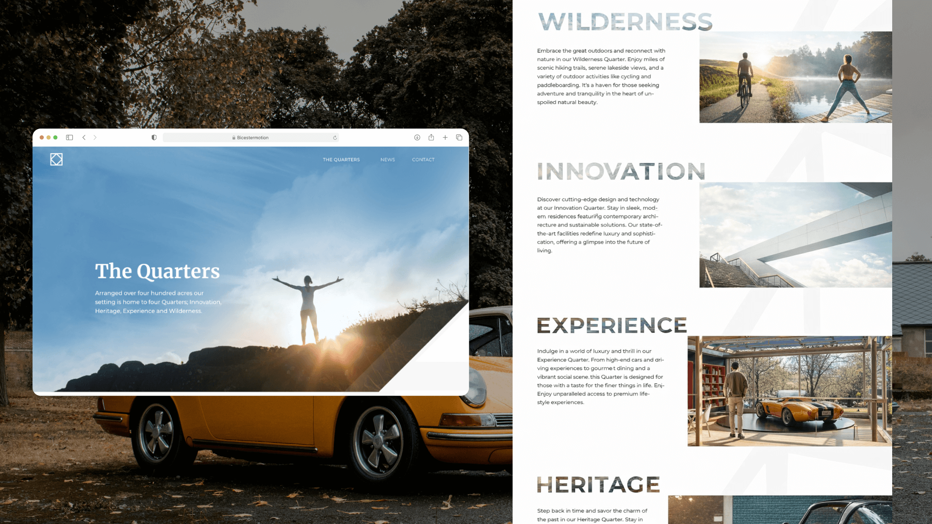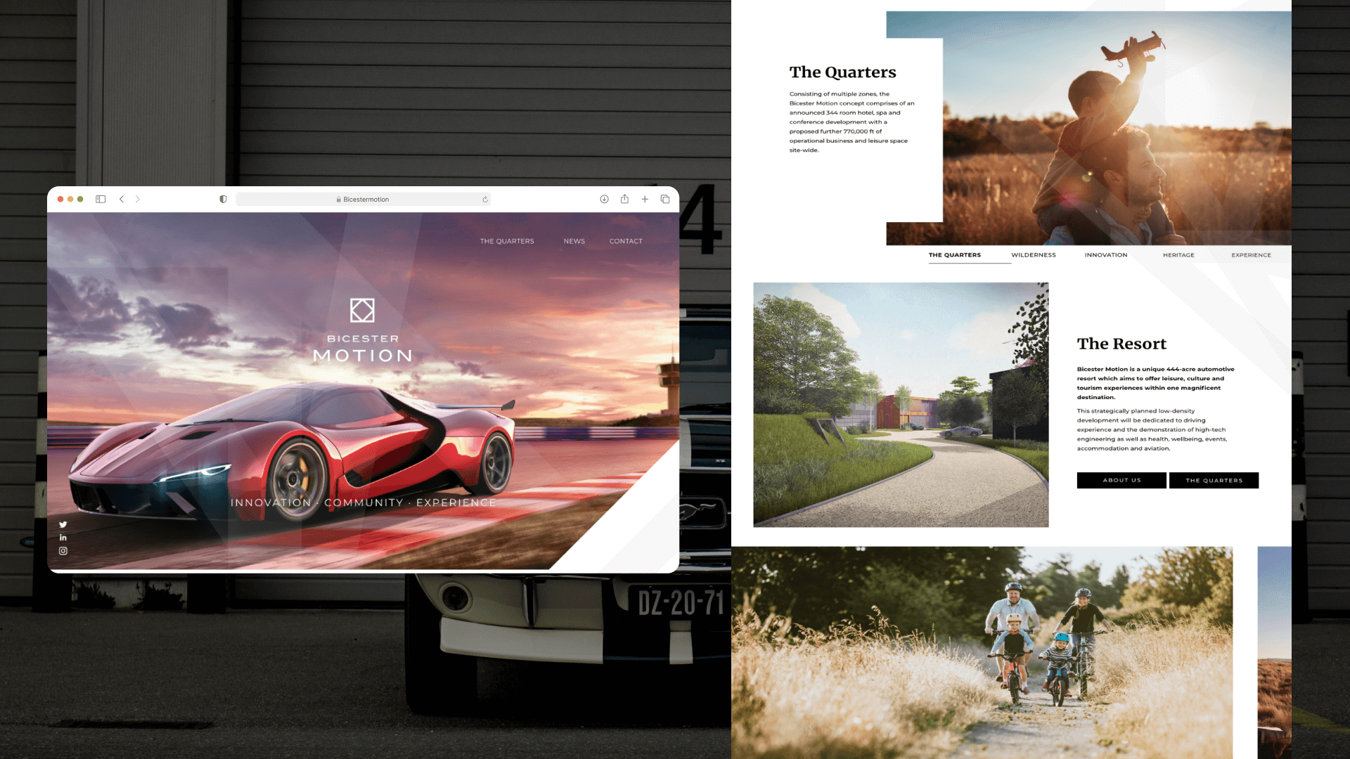 In preparation for the launch of a new venture, I designed a high-end digital platform that balances heritage with innovation. The website introduces the brand through immersive storytelling, refined visual language, and carefully considered interactions, positioning Bicester Motion as a world-class destination with a progressive mindset.